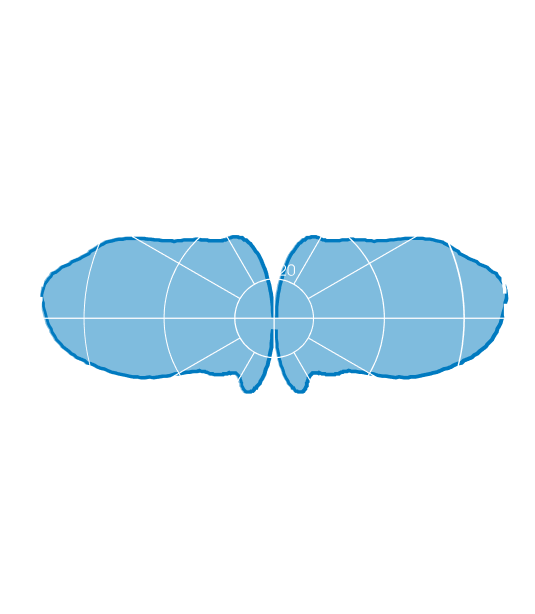 Beamwidth @ -3 dB (see diagrams)