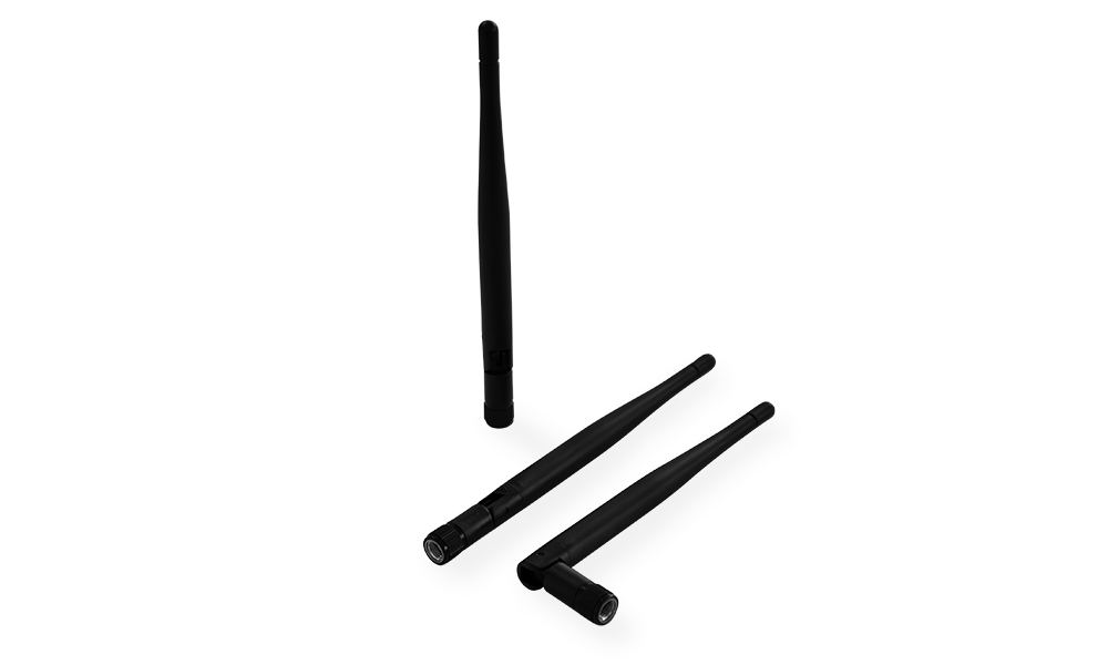 Direct-mounted adjustable Wi-Fi triband antenna (2.4 GHz / 5 GHz / 6 GHz).