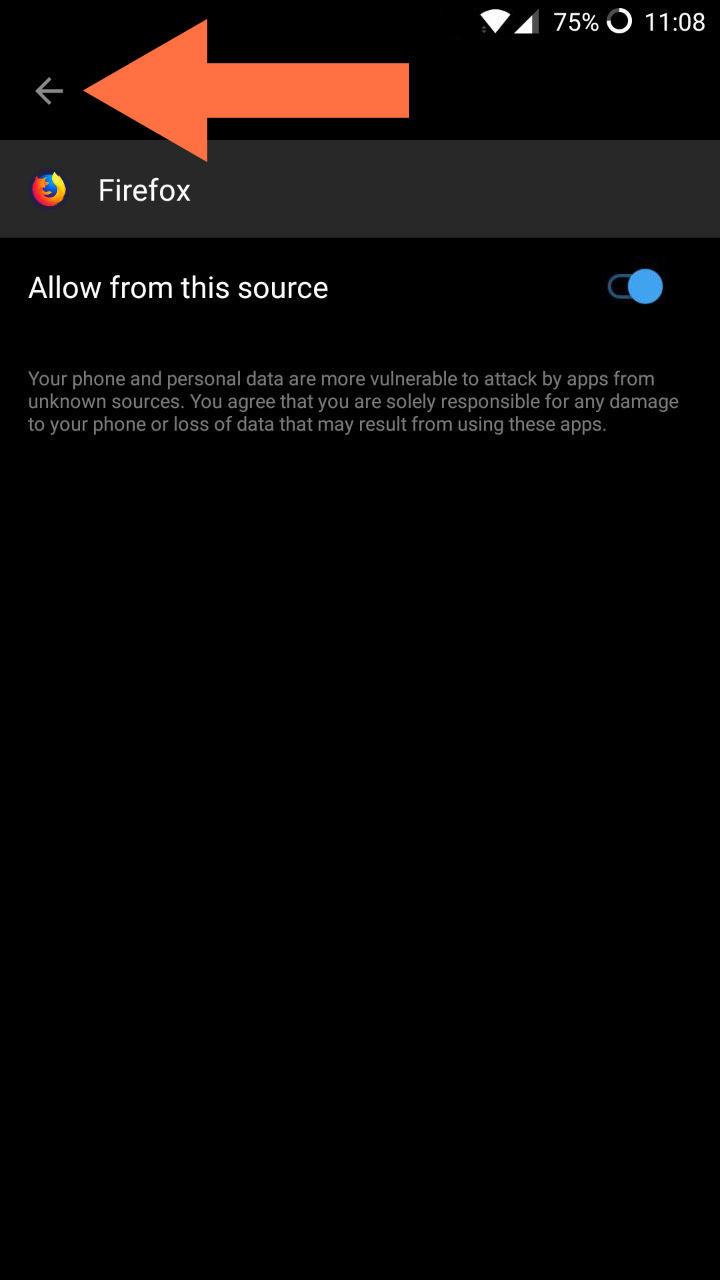 Now your phone will tell you that it hasn't permission to install unknown apps.