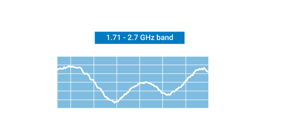 790 - 960 MHz (LTE, ISM, GSM 900); 1.71 - 2.7 GHz (GSM 1800, PCN DECT, UMTS, WLAN, LTE)