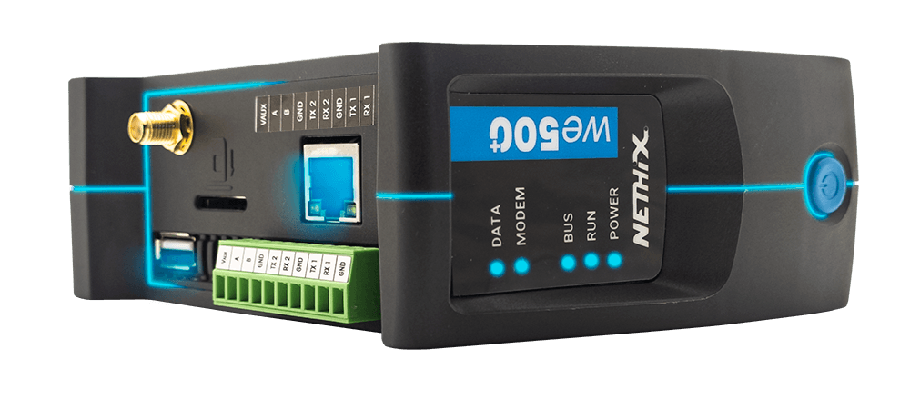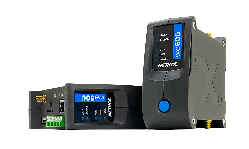 WE500+ è un gateway industriale programmabile ed espandibile che permette il controllo totale dell'impianto grazie alle avanzate logiche di funzionamento. I protocolli MQTT/Modbus (RTU e TCP/IP) si aggiungono all'I/O presente a bordo permettendo il controllo e monitoraggio di un vasto numero di segnali. Tutti i segnali raccolti possono essere inviati al Cloud messo a disposizione da Nethix o a piattaforme di terze parti. È supportato inoltre il protocollo VPN (Standard Open VPN), che permette di accedere da remoto ai dispositivi indipendentemente dalla connessione utilizzata. Il dispositivo può essere utilizzato anche come datalogger, consentendo la storicizzazione di un'elevata quantità di dati nella memoria interna o su supporto USB esterno, consultabili dall'interfaccia Web ed esportabili in qualunque momento.